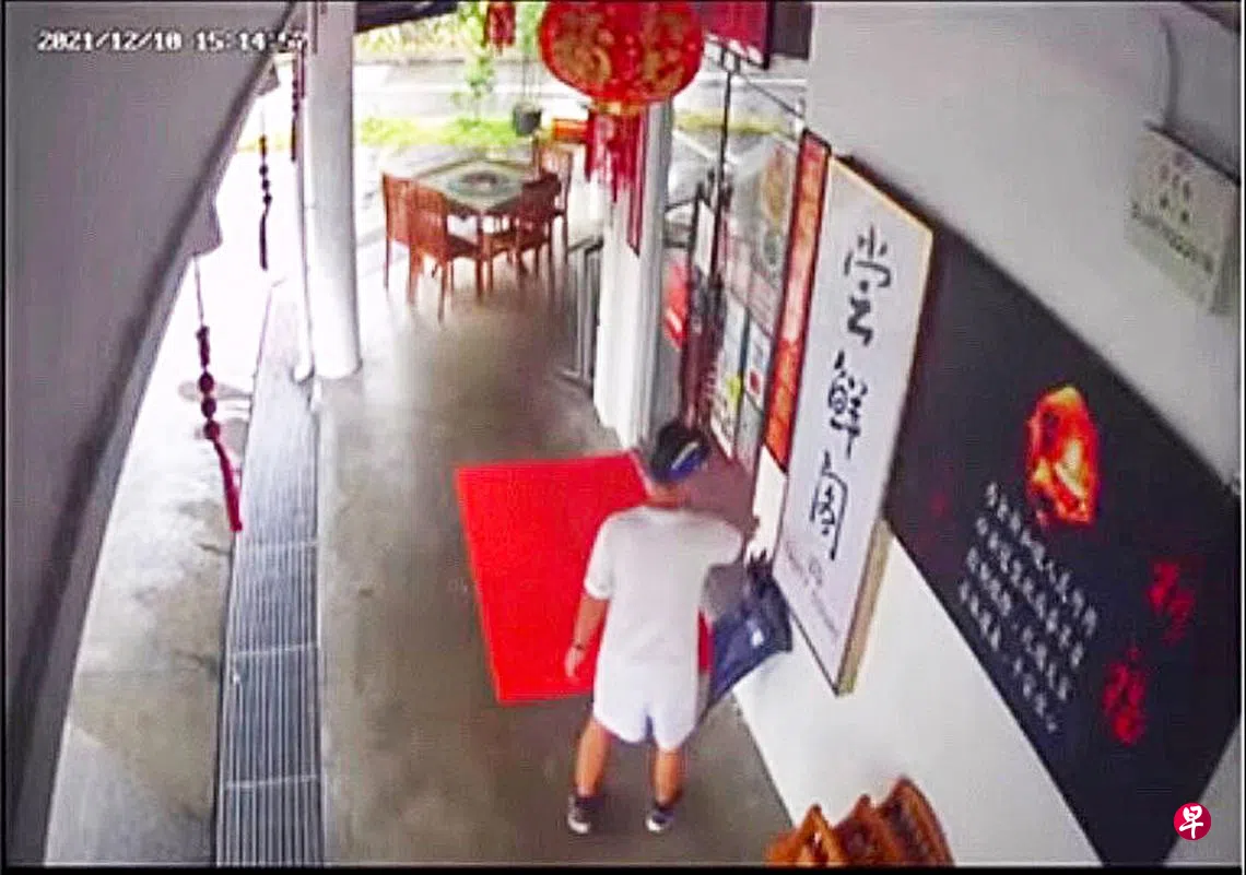 男子被指趁餐厅午休时,取走顾客遗忘在门口的雨伞,餐厅报警。