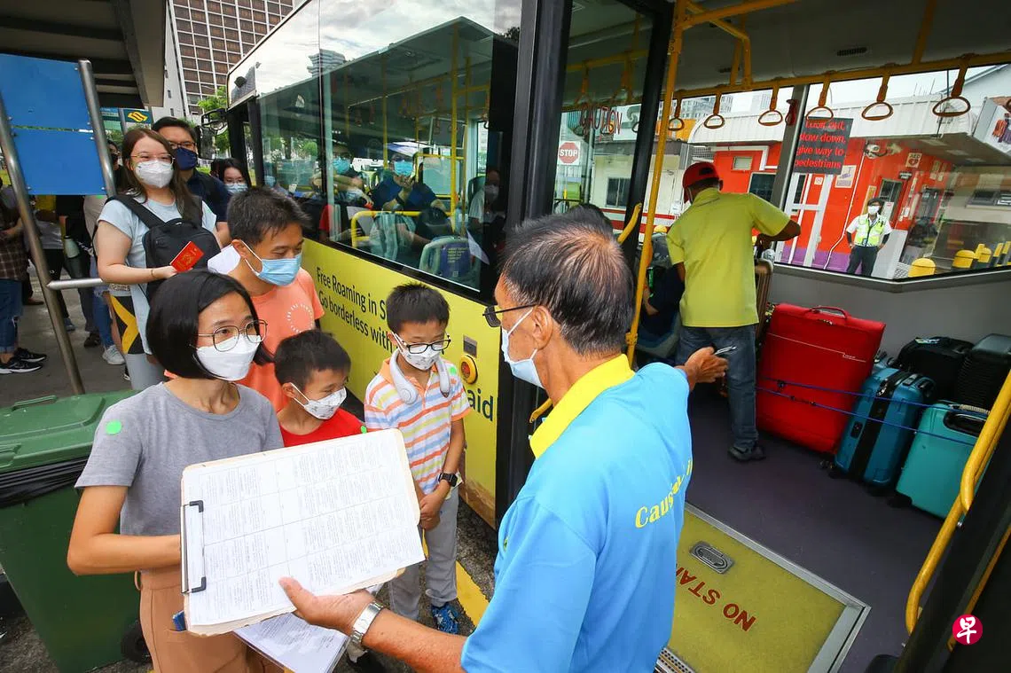 (早报讯)新加坡和马来西亚陆路疫苗接种者旅游走廊扩大至新马两国所有公民的首日,前往新山的乘客多数还是在本地工作的永久居民和长期证件持有者,想赶在年底前回家探亲。乘搭巴士入境马国的新加坡公民,则主要为陪伴亲人回乡探亲,而非特地前往购物或旅游。