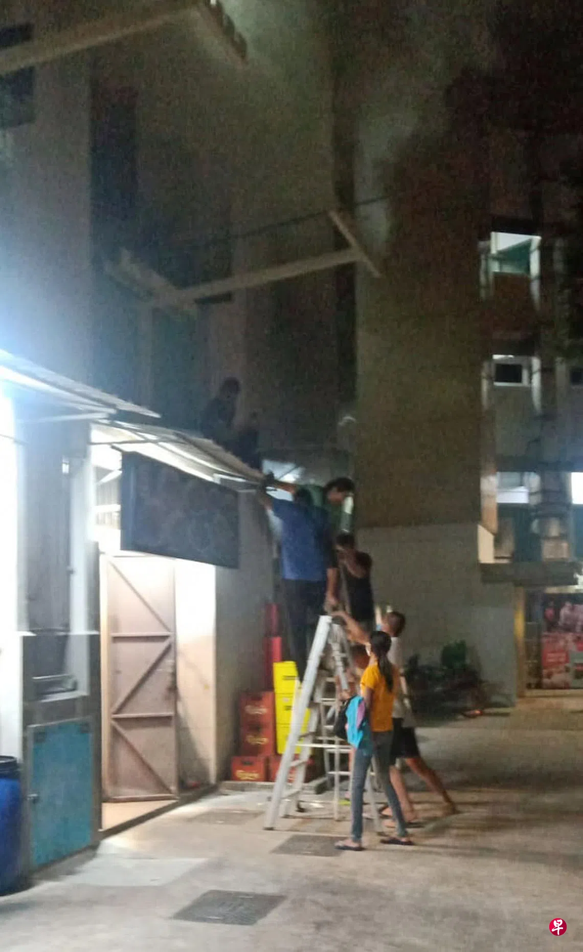 当下,在咖啡店卖泰国餐的一名摊主见状,找来了一把梯子,让两人爬窗逃生,随即拨电给民防部队求救。