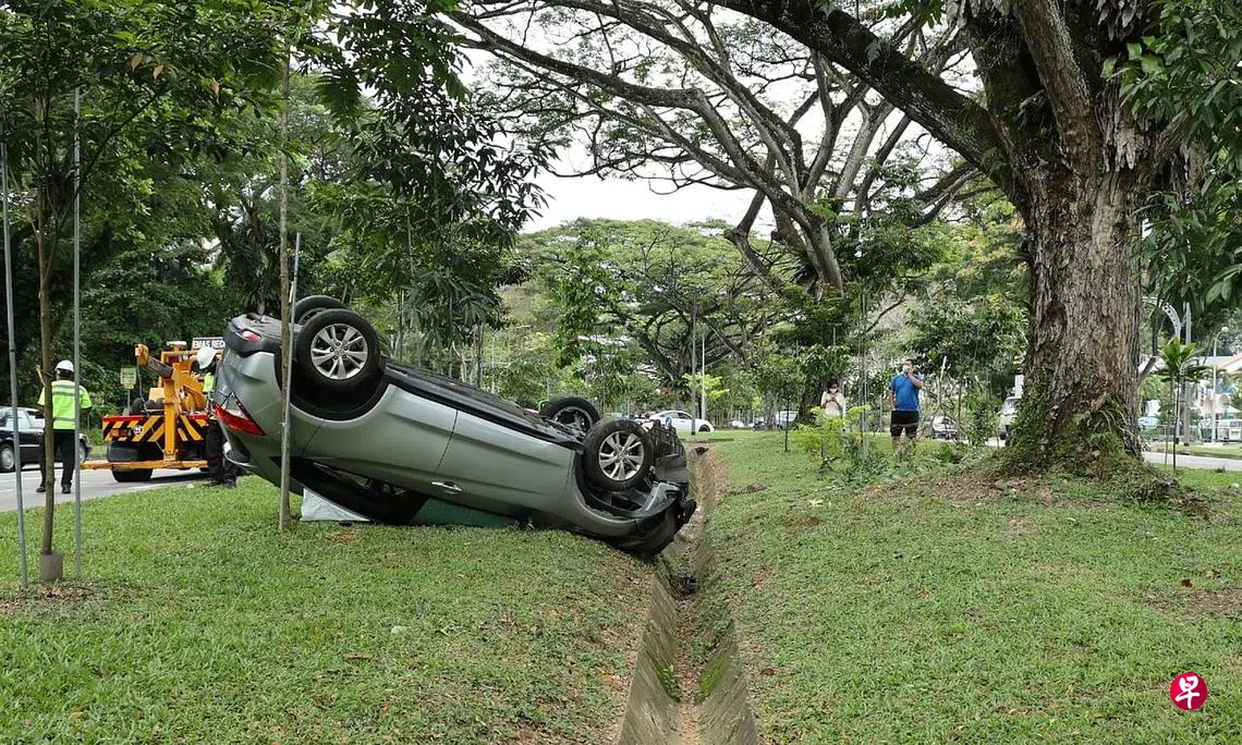 记者到场时发现,一辆银灰色的本田轿车翻覆在分界堤的草地上,挡风玻璃破裂,后方则停着一辆罗厘。事后,三名男子坐上罗厘离开。