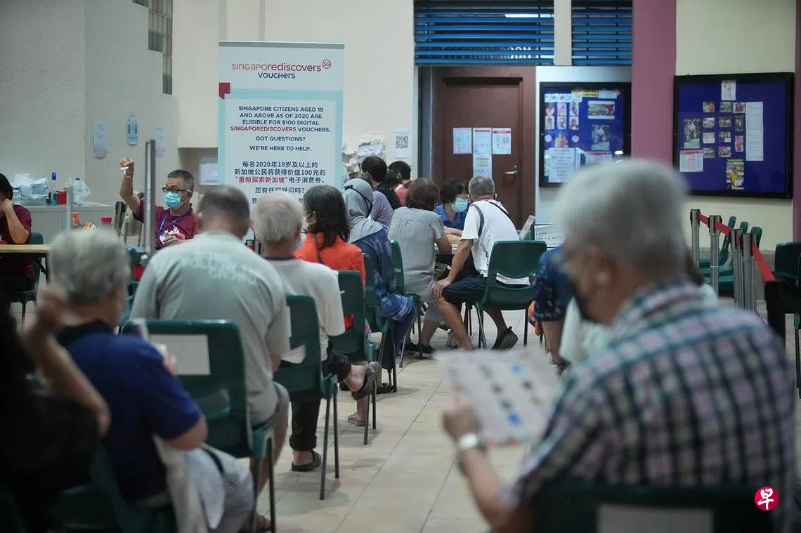 退休人士林楚云(74岁)早上10时到场,她指早前已使用30元的消费券,今天想要用剩余的70元购买滨海湾花园门票和花柏山缆车车票,以便明年和朋友一起出游。
