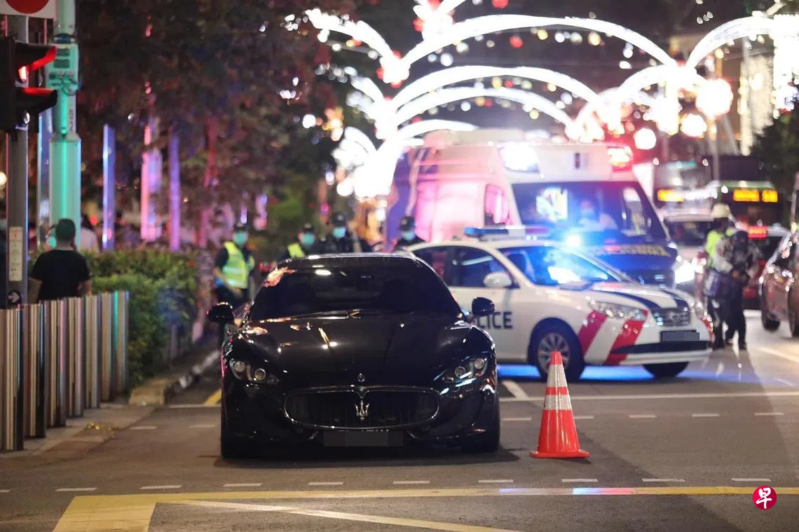 (早报讯)乌节路发生意外,一辆玛莎拉蒂跑车疑在交通灯处撞上正准备过马路的一众行人,导致至少三人受伤。