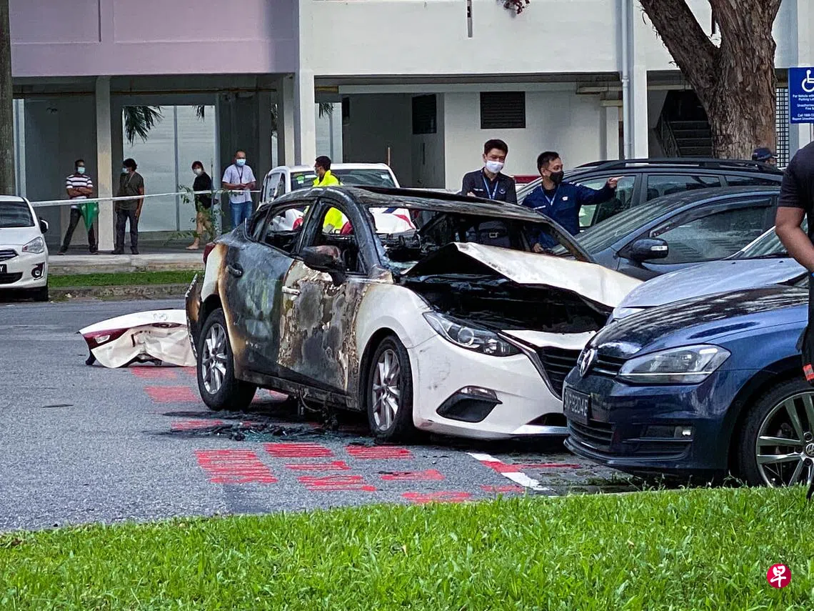 警方发言人受询时证实,今天下午3时接获一辆轿车在加西雅弯第42座组屋停车场失火的通报。民防部队医护人员在场宣告一人不治。