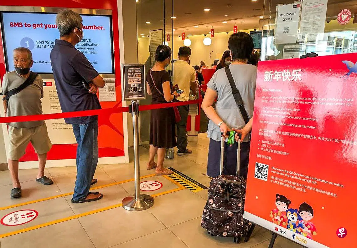 出于防疫考量,星展银行、华侨银行、大华银行和渣打银行的换新钞服务今年都实行预约制,让民众明天起分散在不同时段领取新钞。马来亚银行和花旗银行今年也提供预约,但并不强制要预约才可领新钞。