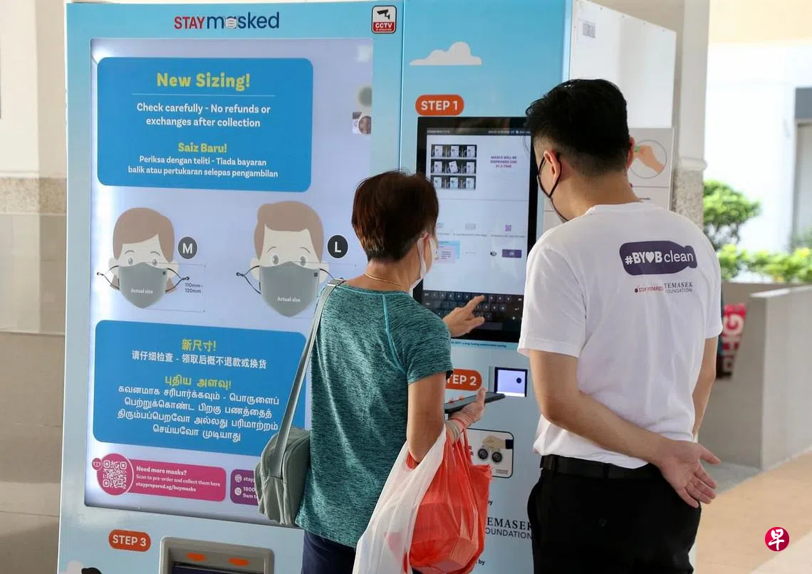 (早报讯)淡马锡基金会今天(1月10日)上午开始进行最后一轮口罩派发活动,吸引不少附近居民前去口罩派发机器领取。