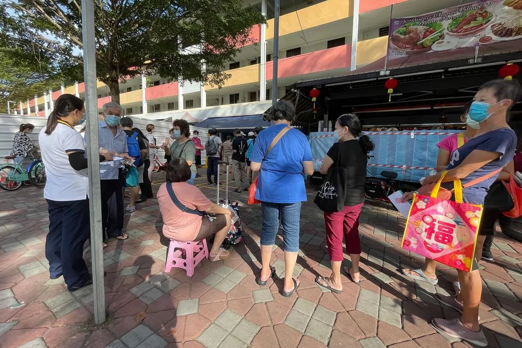在早上11时才开放换新钞的华侨银行则在门前排了凳子,让民众可以边坐边等。在等候的同时,银行人员也派发红包封,让排队的民众感受新春的喜气。