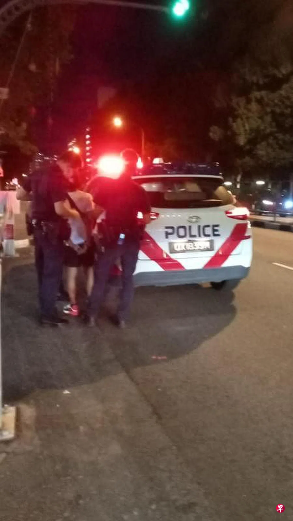 黄展新说,男子后来被戴上手铐,由四名警员押上警车载走。