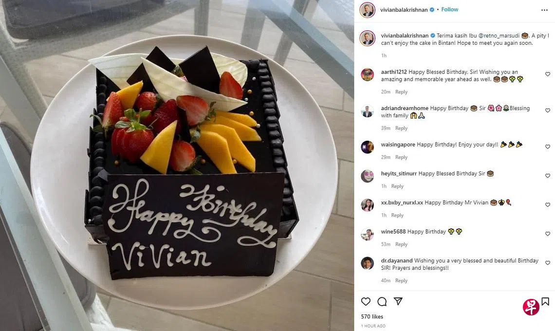 维文今天(1月25日)下午在社交媒体平台Instagram上分享蛋糕的照片,并回应雷特诺(Retno Marsudi)的好意说:“可惜我无法在民丹岛享用蛋糕。希望很快能再次见到你。”