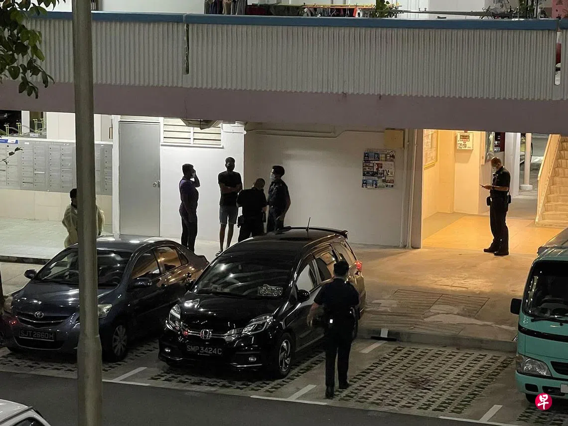 记者昨晚走访现场,住在对面组屋的瓦妮(37岁,幼教老师)受访时绘述,事发时她刚好站在窗户旁与友人通电话,看见两名男子在组屋底楼起争执。