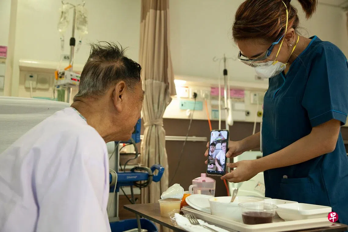 (早报讯)因肝硬化引起并发症,65岁的卓欣成去年和今年都在医院内度过农历新年,连续两年错过与家人吃团圆饭的机会。不过,陈笃生医院贴心地为病患准备了“过年餐”,并让他有机会通过视频通讯,与家人共进晚餐,迎接新一年。