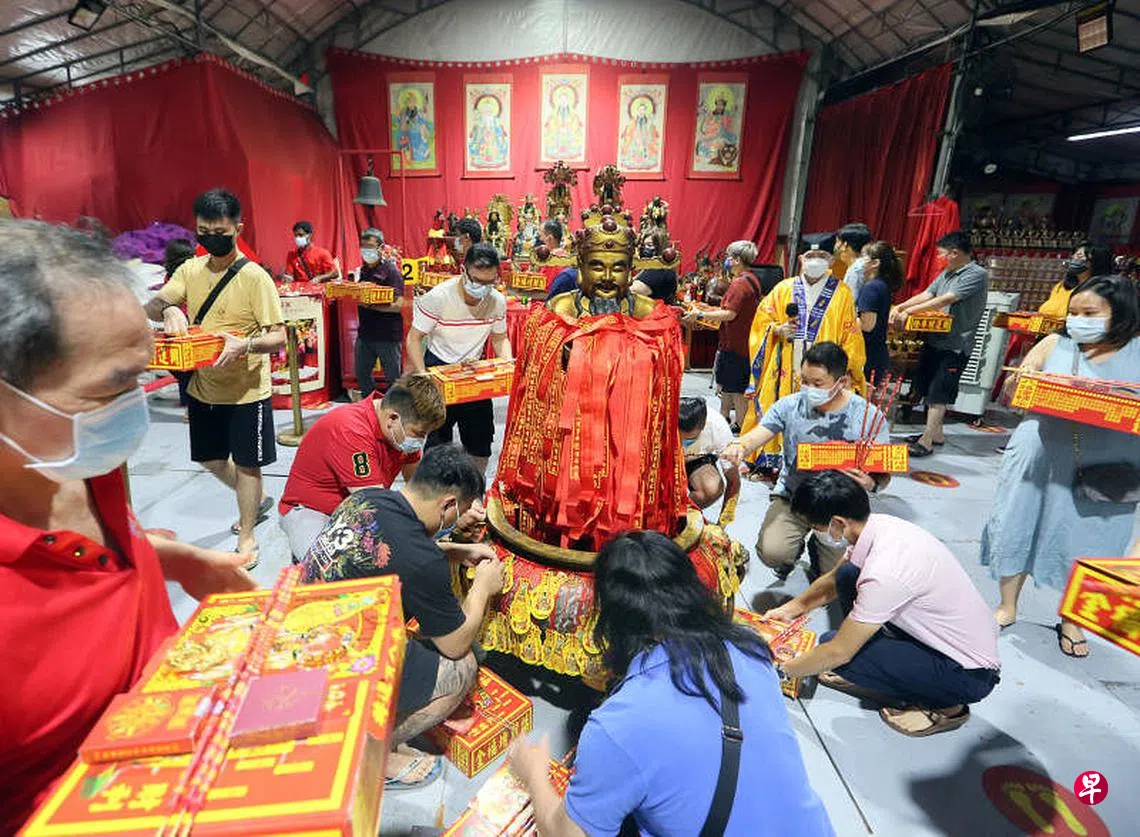 庙宇前年9月18日失火后仍在修建中,加上受疫情影响,财神庙的摸财神活动今年再次取消。