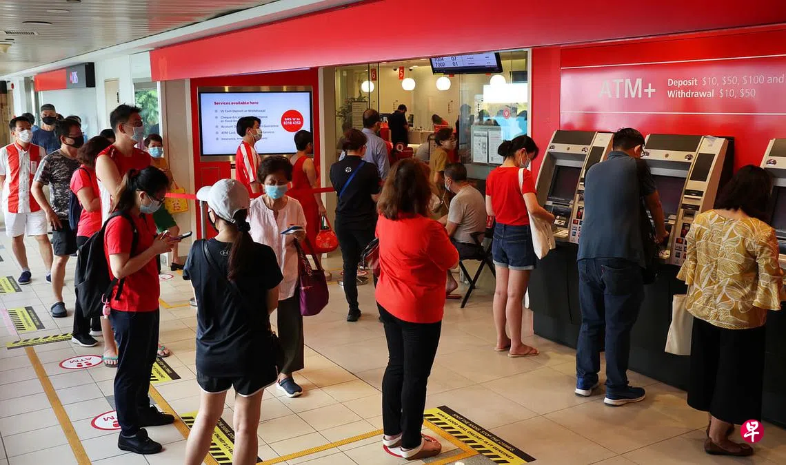 记者今早8时走访大巴窑建屋局中心观察到,星展银行外出现排队等待入内的队伍。在约20分钟后,排队的人数增加至约30人。虽然有部分年长者一早就在银行外等待银行开业,将钱存入户头,但多数的公众都赶在上班前通过自动存款机存钱。