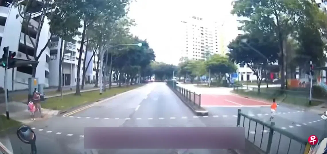 直到他过了一半马路,一名相信是小孩家长的妇女才从交通灯处冲过来,她紧张地挥手呼叫,并随即跑过对面马路追赶前方的小孩。
