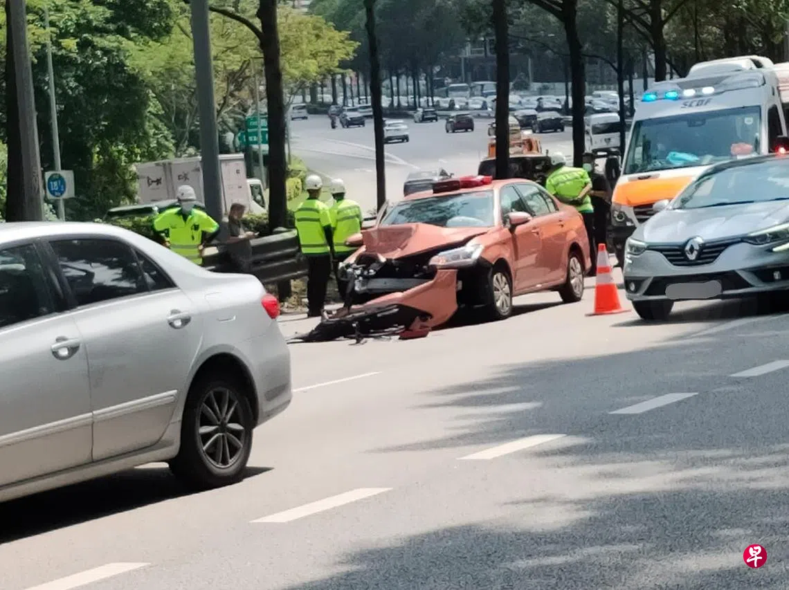 (早报讯)一辆汽车、一辆德士和一辆电单车在快速公路上相撞,导致三人受伤送院。
