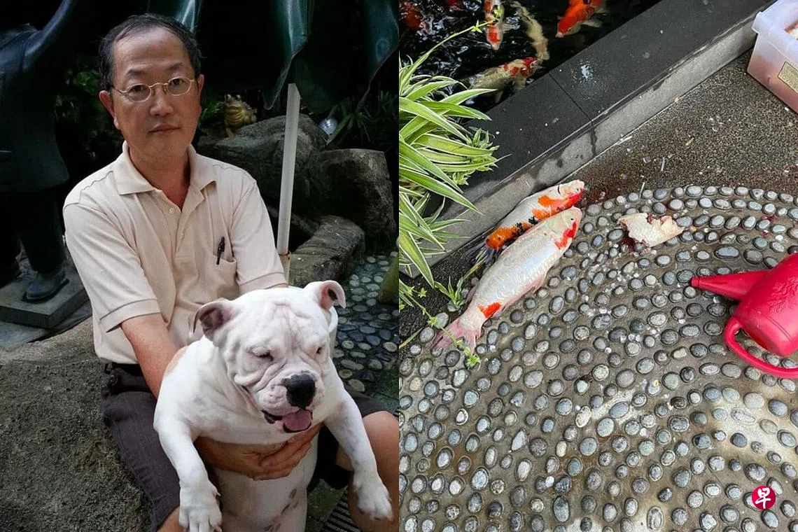 他指出,家园前后共两个鱼池饲养近50尾锦鲤,当早上起床时,发现后院鱼池旁的物品被打翻,大感吃惊。