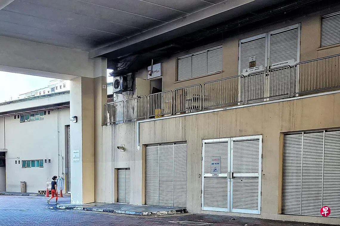 (早报讯)放在食阁走廊的纸箱,疑是遭烟头点燃失火,波及食阁外墙和冷气压缩机被熏黑。