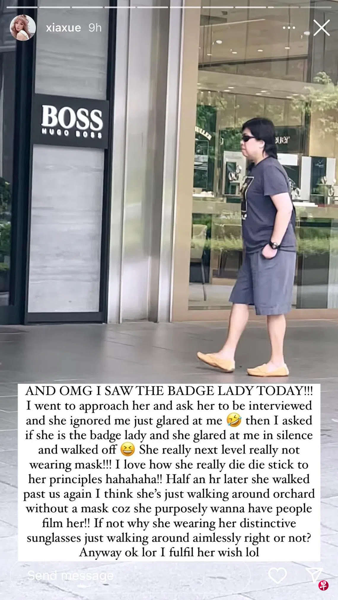 近期,出狱后的她被发现仍不戴口罩就外出,网红“下雪”上周日(3月6日)发的Instastory限时动态,就拍到潘秋玉没戴口罩在乌节路逛街。