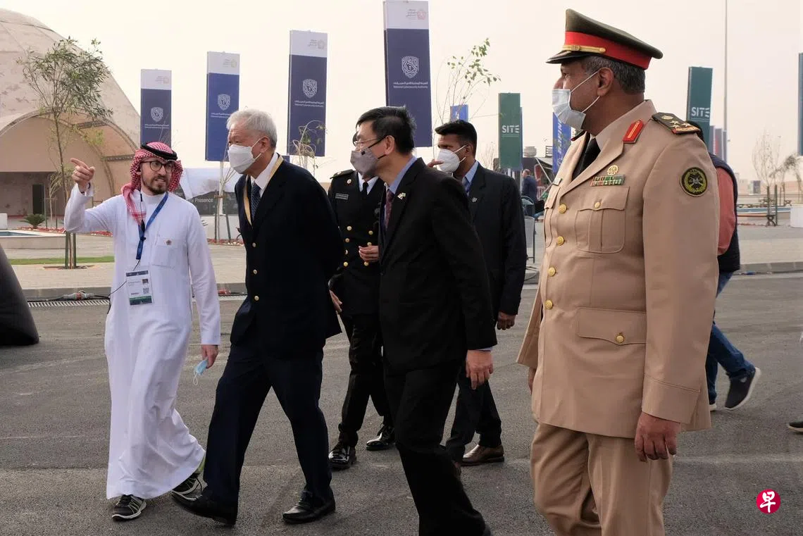 国防部今天(3月8日)发文告说,黄永宏前天起至9日到访利雅得(Riyadh),参加首届世界防务展(World Defence Show)。他昨天到访展区时,也和参展的新加坡公司交流。