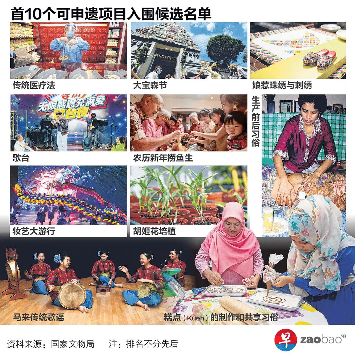 (早报讯)国家文物局就第二次申遗的非物质文化遗产项目展开初步咨询,公布首10个入围候选名单的可申遗项目,其中包括歌台、妆艺大游行,以及农历新年捞鱼生。