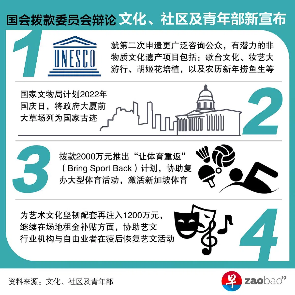 贸工部兼文化、社区及青年部政务部长刘燕玲今天(3月10日)在国会拨款委员会辩论文社青部开支预算时宣布这项消息。