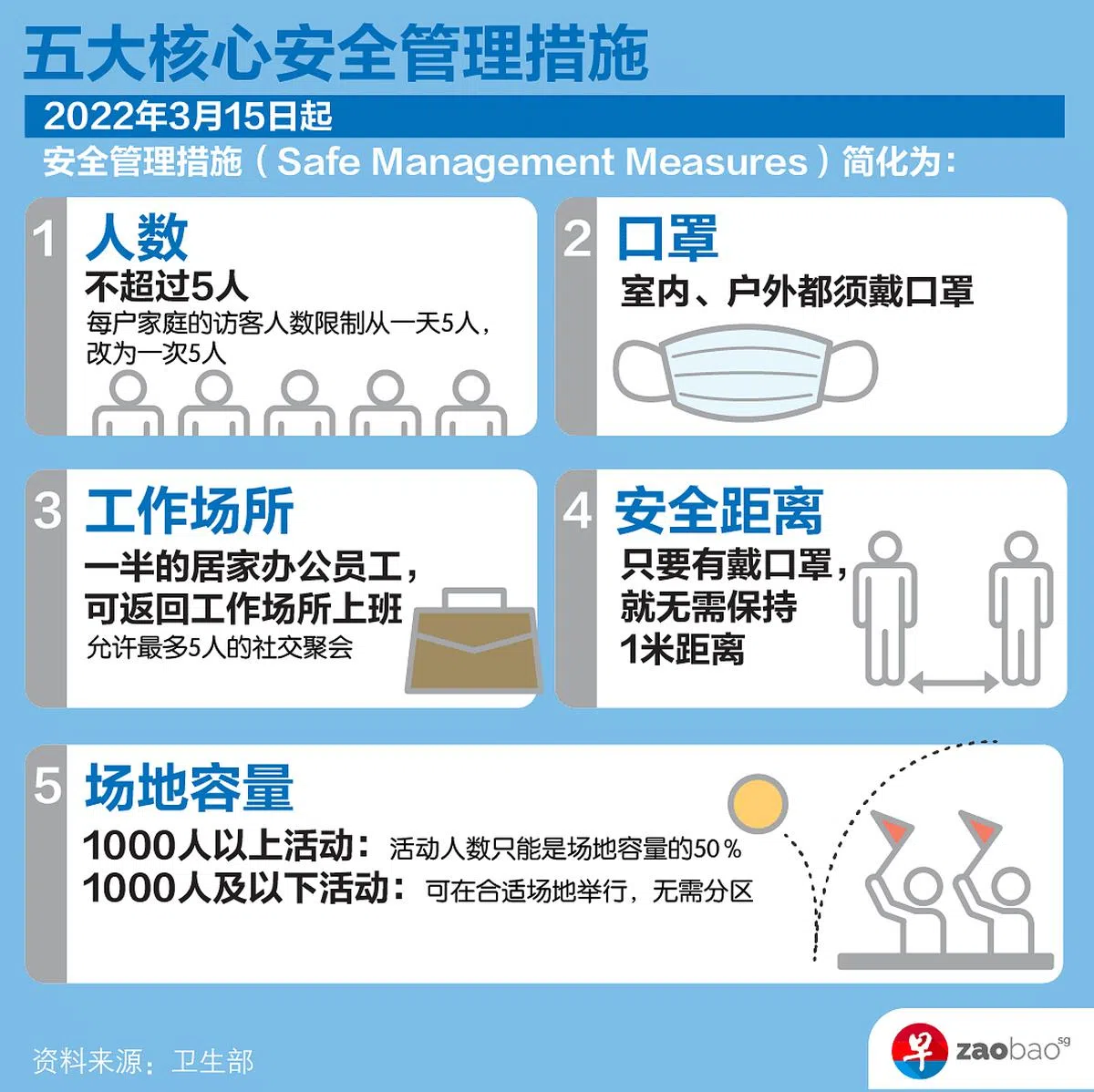 工作小组早前制定了“安全管理措施一至五”,通过调整社交人数、戴口罩规定、工作场所限制、安全距离,以及活动人数,把现有的各项安全管理措施化繁为简。