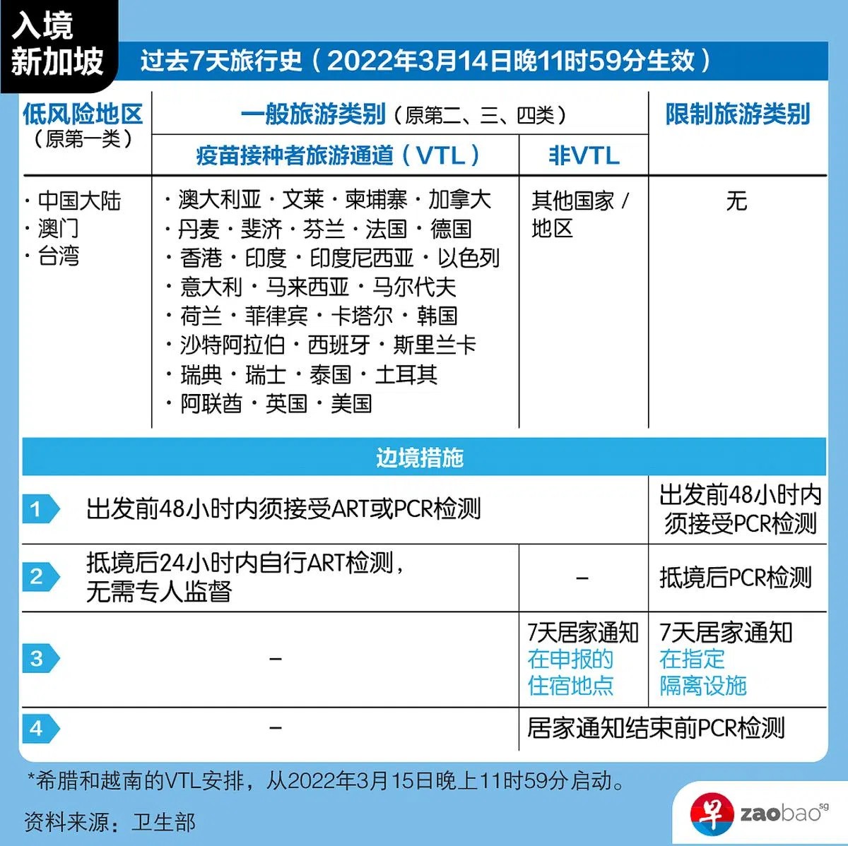 卫生部今天(3月11日)发文告宣布上述消息时说,新加坡在上个月22日简化了边境措施和国家及地区的风险分类,为疫苗接种者旅游做准备。过去几个星期,输入病例保持在非常低的水平,只占每日病例的约1%。这是因为很多国家已过了奥密克戎的传播峰值。.