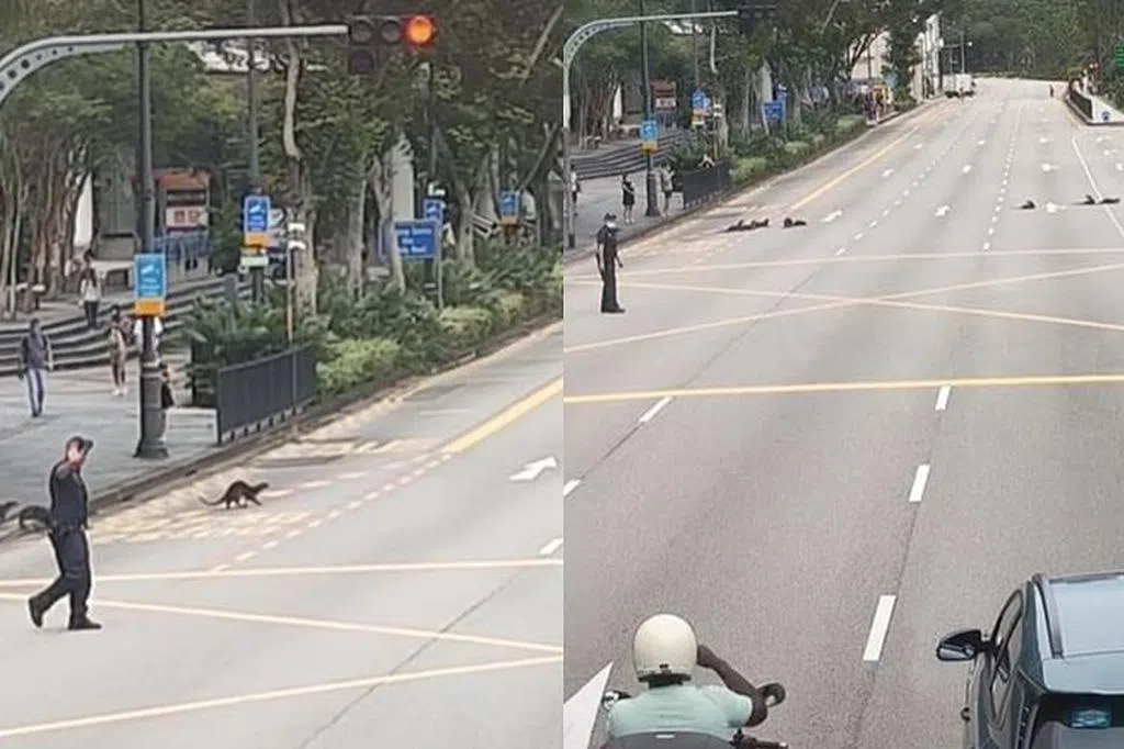 (早报讯)继早前水獭大军在总统府前“出巡”获警卫开路后,近日又有水獭在闹市街头,获得民众护航。