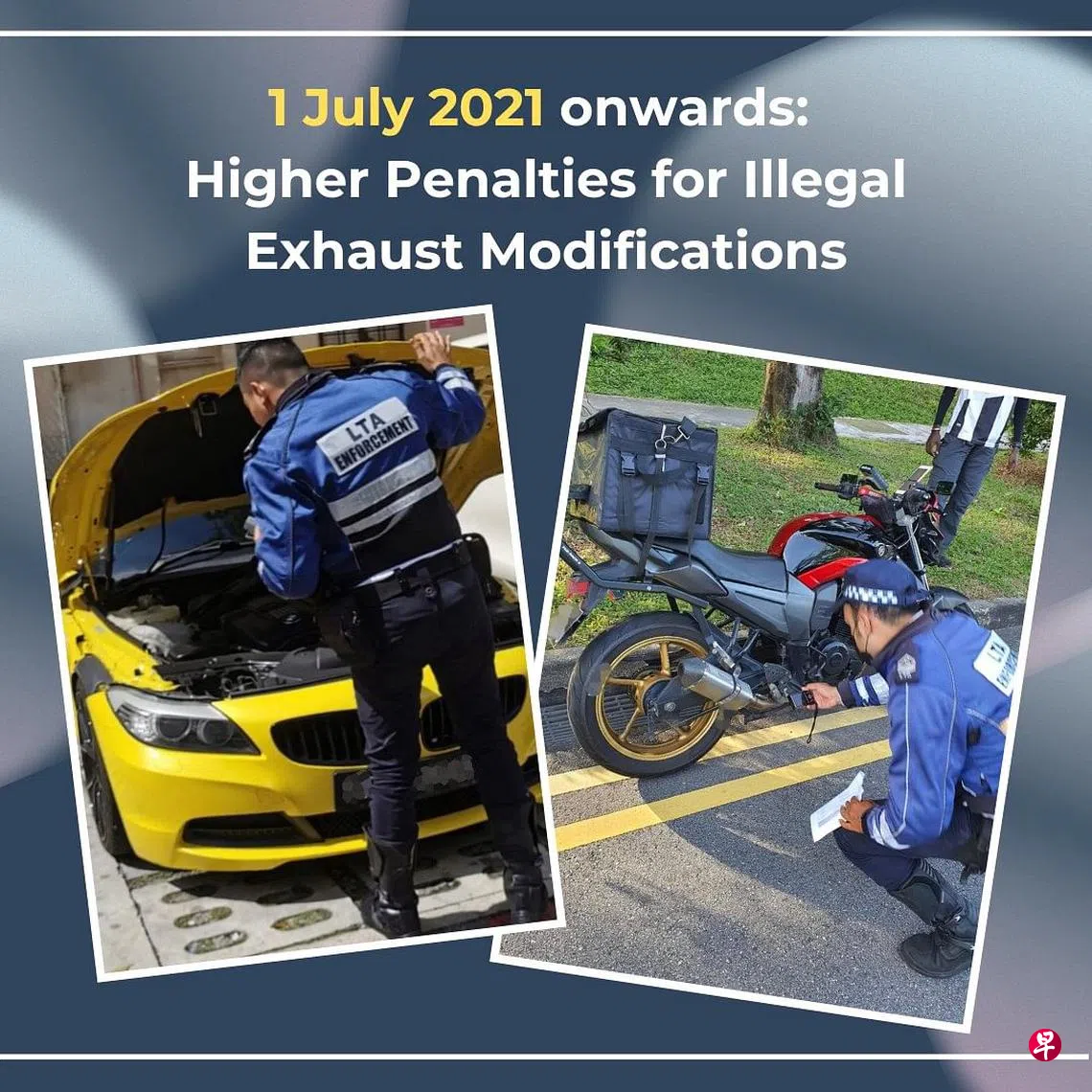 非法改装车辆排气系统可构成安全隐患,或造成公共滋扰。陆路交通局自去年7月1日起,加重对这类非法行径的处分,初犯者从原有500元销案罚款,增至1000元,重犯者也将被控,并扣押车辆。