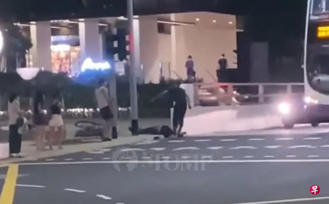 (早报讯)疑被脚踏车车轮碰撞到,男子心有不甘与骑士起冲突,最后还趁骑士倒地时举脚踹伤人。
