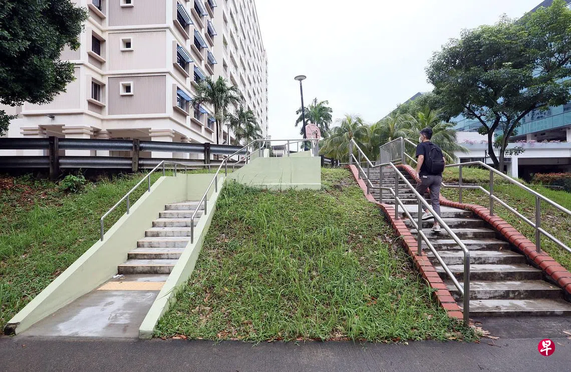 《新明日报》记者日前走访,据观察,这两处楼梯一新一旧,都通往附近的巴士站。据居民所知,这一带的组屋去年初开始进行翻新工程,左边的新楼梯于去年底竣工。