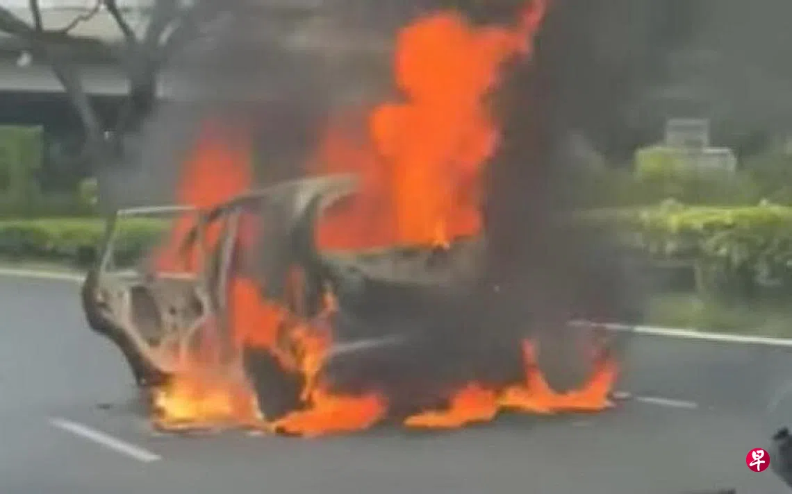 据网络流传的视频,起火狂烧的是一辆本田(Honda)掀背式汽车,它当时就停在第二条车道上。一名网民形容,当他开车经过时,即使隔着车窗、车内开着冷气,都还是可以感受到一股热气。