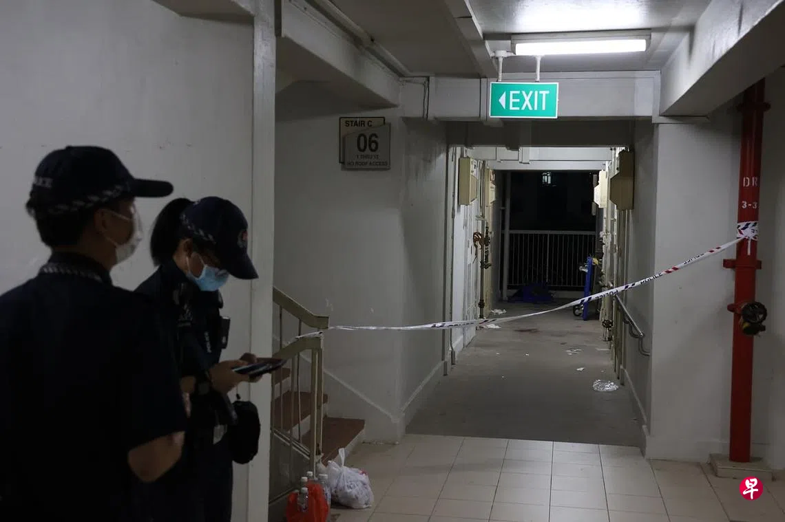 记者昨晚10时50分走访案发现场,警方已在6楼单位外拉起封锁线,地上还散落着一些证物。有两名警员驻守在附近电梯口,维持现场秩序。
