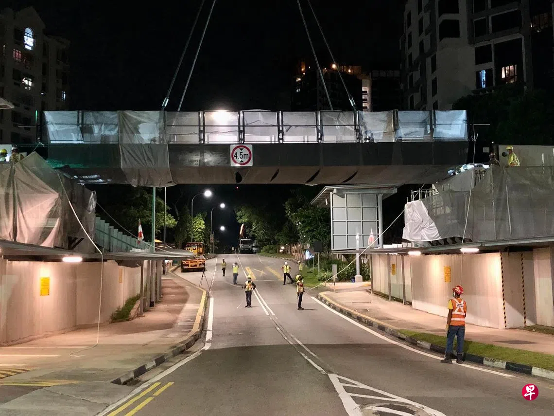 刘燕玲昨晚与陆路交通管理局以及当局的承包商,一起见证了山景桥重建工程完工。为了安全地进行这项工作,山景路也在昨晚暂时关闭,并于今早、第一趟巴士抵达前开通。