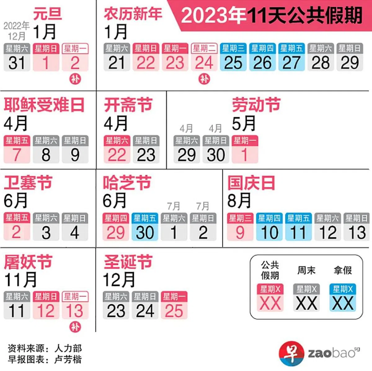 (早报讯)2023年公定假期日期出炉,公众明年可享有七个长周末,其中农历新年期间除夕至初三还有连休四天的超长周末。