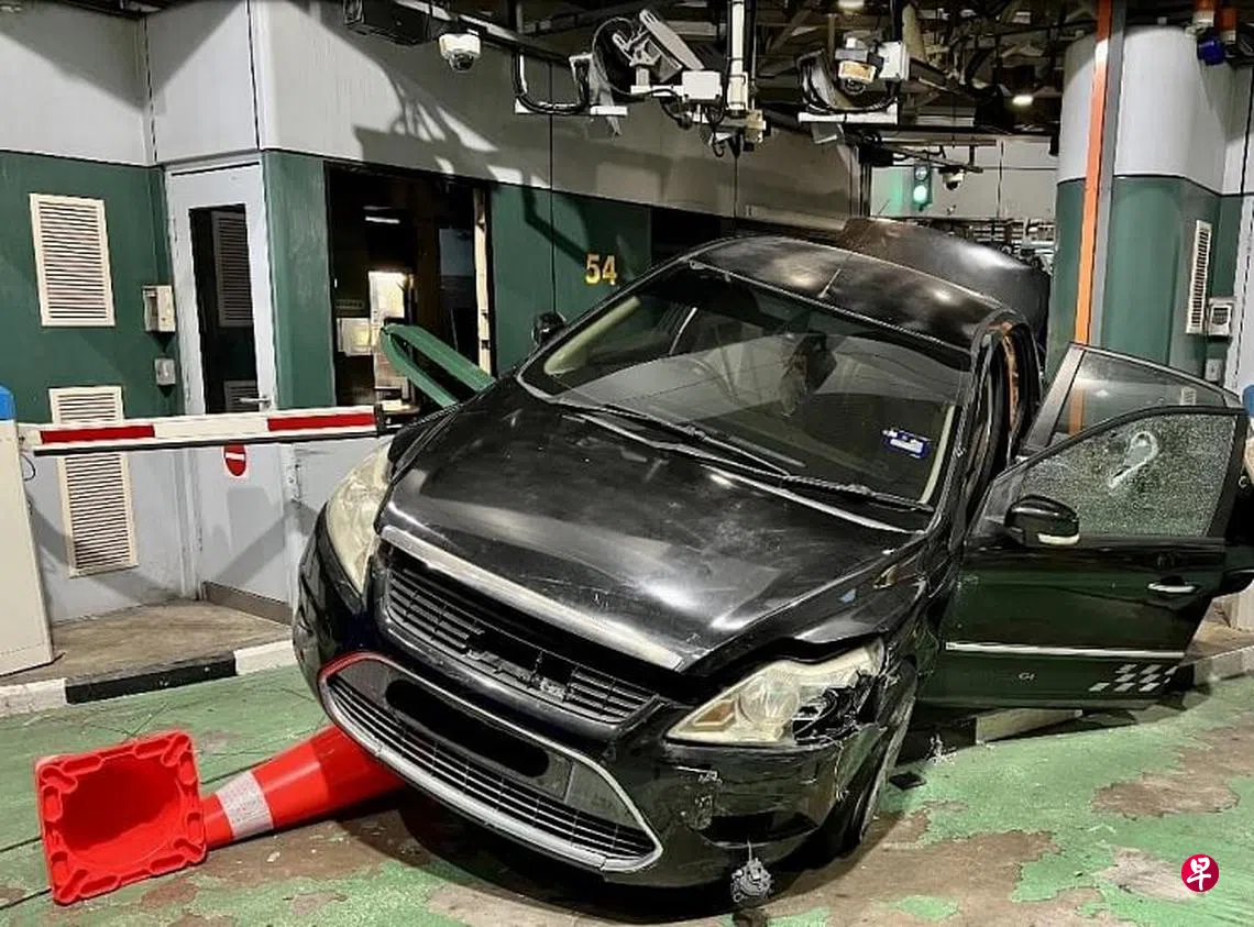 情急之下,男司机被迫改道前往电单车自动通关通道,但因车道狭窄,车子撞向柜台后动弹不得。一名关卡人员在事故中右脚踝擦伤,男司机遭拘捕。