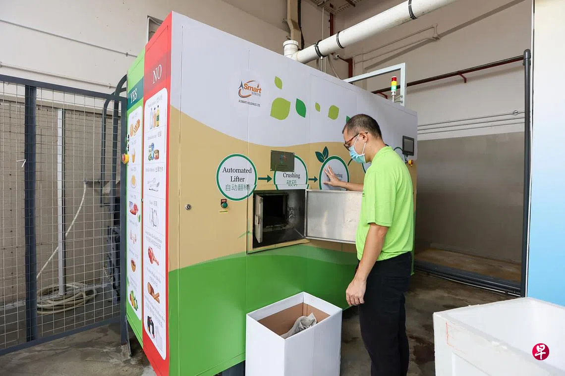 以往类似系统一般都设在小贩中心内,这是本地首个设在邻里中心供其他商家使用的厨余处理器,它就设在淡滨尼81街第823A座的垃圾收集站内。系统每天最多可处理400公斤厨余,利用微生物把它们分解成非饮用水和有机肥料。