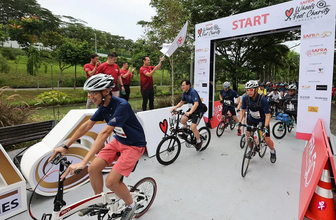 在线上举行的Wheels and Feet活动,希望筹得10万元的善款。目前,已有超过1300人报名参加。公众可按照自己注册的挑战项目,自行规划运动节奏,以步行、跑步、溜滑轮及骑脚车等方式完成这项挑战。这项慈善活动目前已筹得超过9万8000元,善款将用于帮助总统慈善挑战(President’s Challenge)的受益人,另外一些慈善活动也可能用于帮助其他有需要的群体。