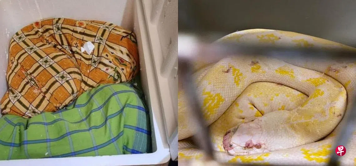 根据移民与关卡局和国家公园局今日(4月9日)发的联合文告,被捕男子驾驶用来运输水泥的马国注册卡车,在入境新加坡时,被移民局关卡稽查员要求进行例行检查。稽查员随后在卡车中发现了可疑泡沫塑料箱,箱子的侧面有多个穿孔,相信是被困在箱内的蟒蛇留下的痕迹。