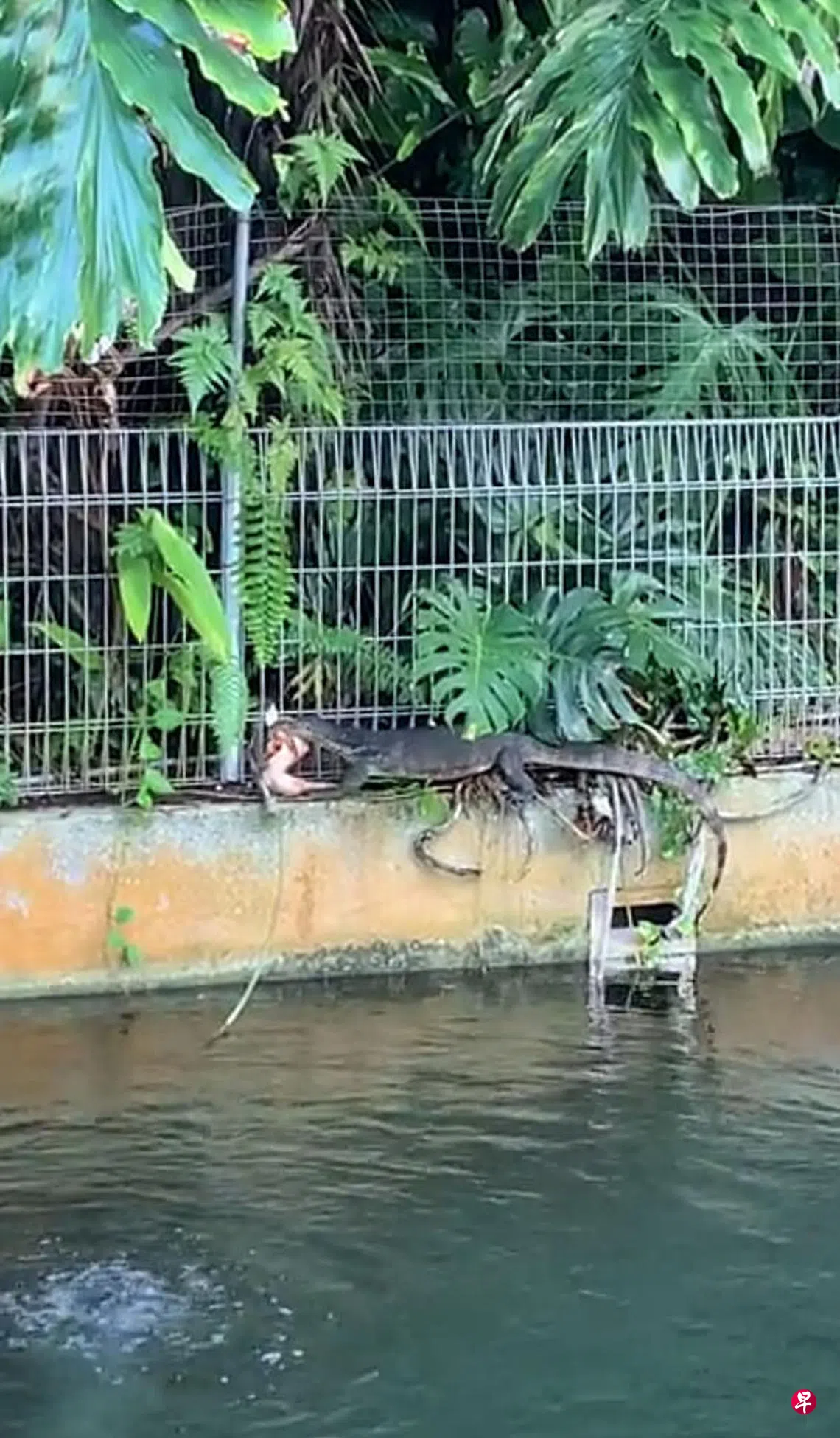 根据网上视频画面,一只巨蜥在滨海湾花园锦鲤池内拖着鱼爬来爬去。贴主留言表示,早上到滨海湾花园,无意中看到巨蜥在吃鱼,当时有很多鱼尸被撕裂的情况。