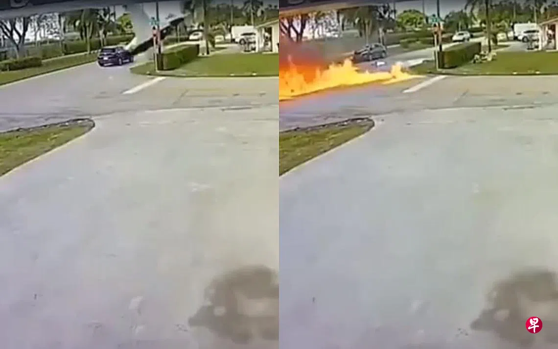 (早报讯)近日一段飞机坠毁砸中车子着火的视频在本地疯传,且言之凿凿指事故发生在本地,此为不实消息,视频源自去年美国佛罗里达的一起意外。