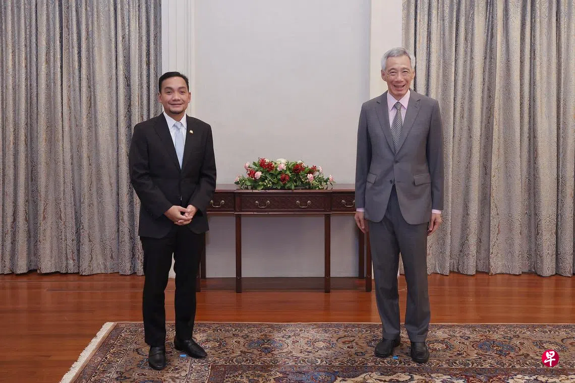 (早报讯)李显龙总理会见前来新加坡访问的的柔佛州务大臣翁哈菲兹,两人讨论了新加坡和柔佛州能如何开展更多合作。