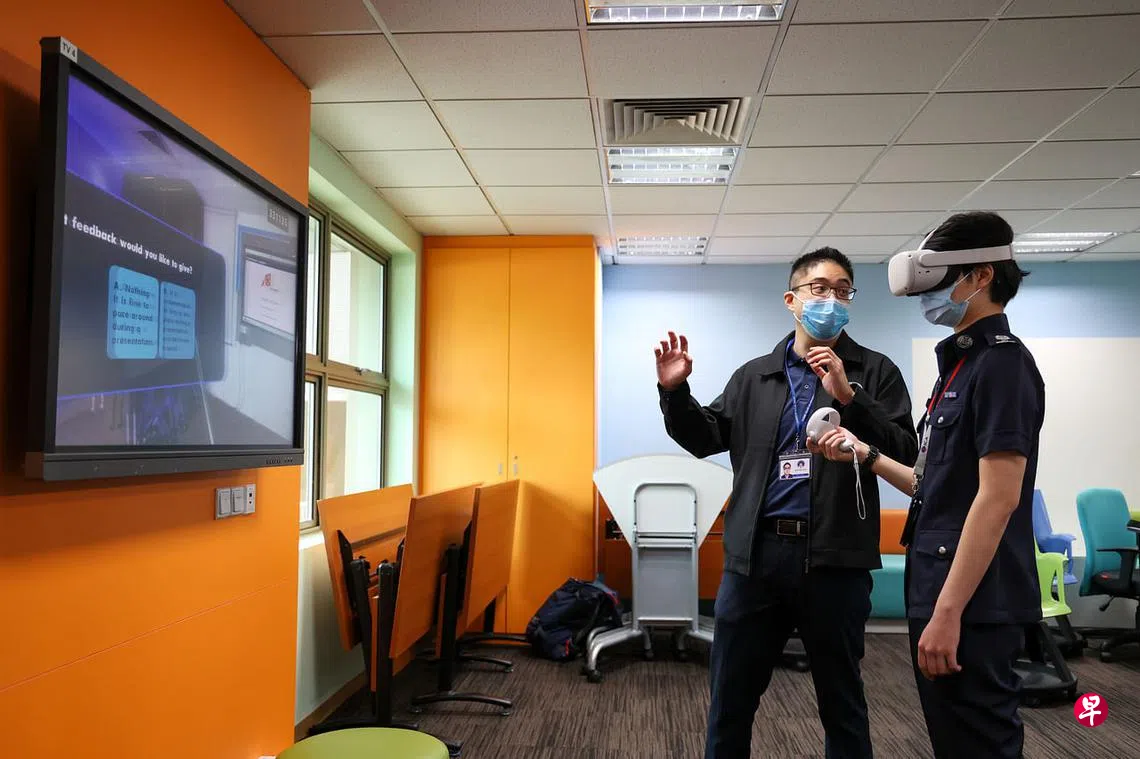 (早报讯)内政群英学院首次利用虚拟实境科技培训导师,协助他们掌握授课时所需的软技能,以提高导师的授课效率。