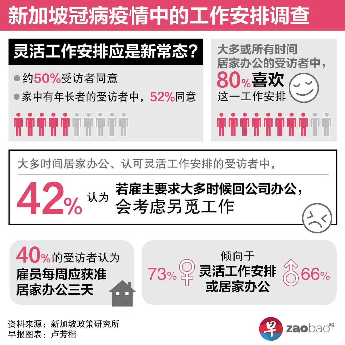 (早报讯)冠病疫情改变人们对办公模式的看法,约半数受访者认为,灵活工作安排应成为我国的新职场常态。需要照顾家中年长者的受访者当中,高达52%倾向灵活工作安排。