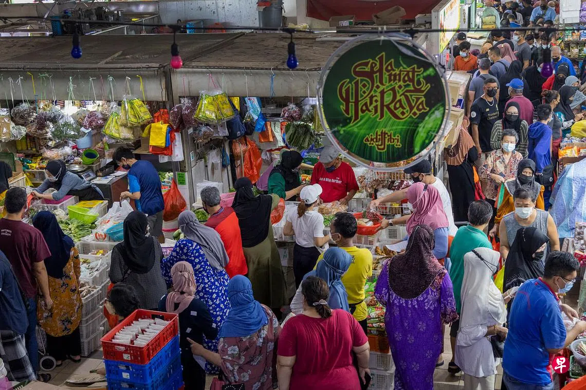 (早报讯)两年来首次可以不受社交人数限制庆祝开斋节,向来备受马来族顾客欢迎的芽笼士乃巴刹今早再现昔日的热闹景象,许多家庭带着兴奋的心情前来抢购新鲜食材,都迫不及待能在后天举行家庭聚会,为一家大小烹煮美味佳肴。