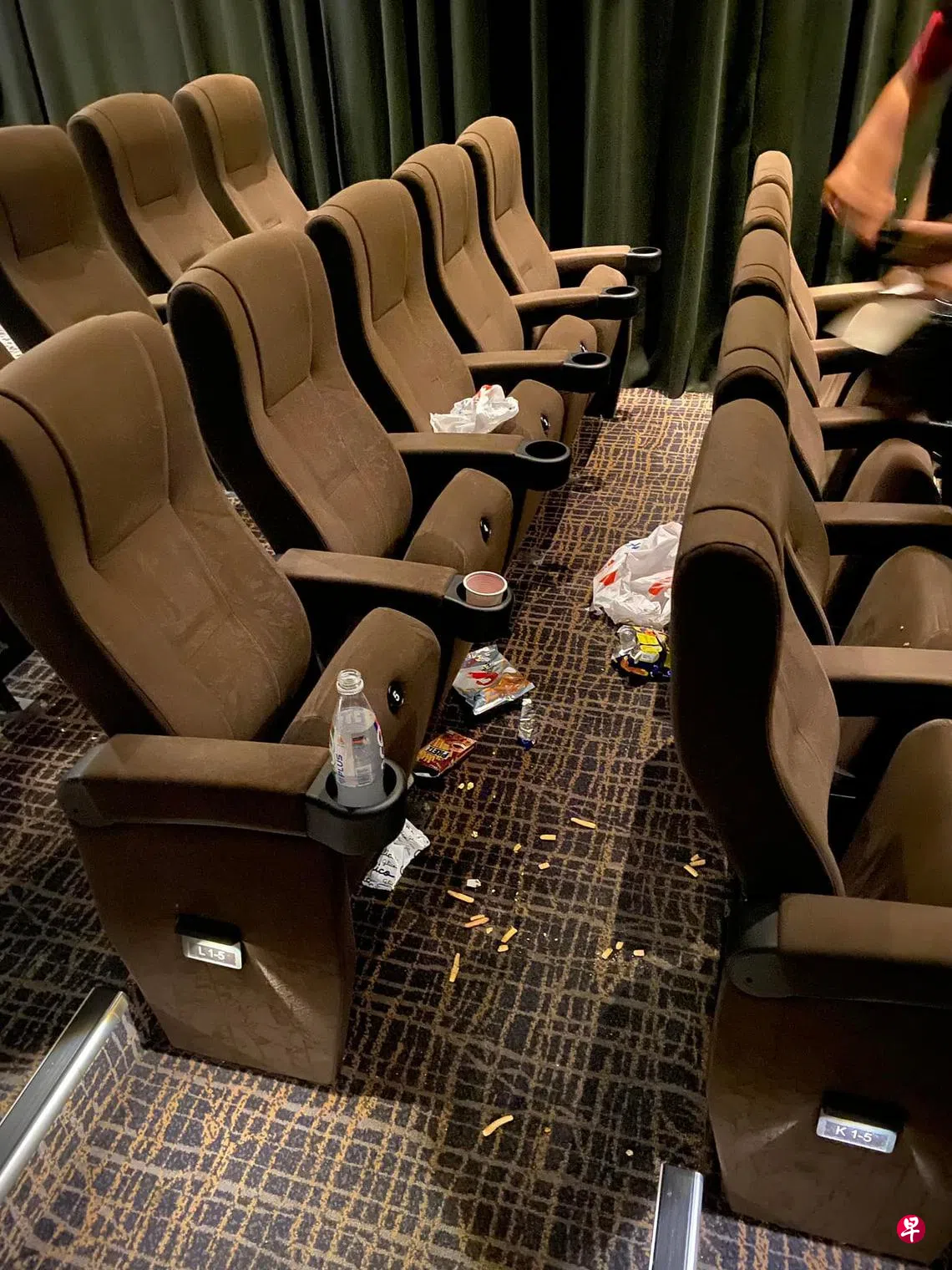 一名同场观影的观众看到情况感到愤怒,将女子留下的脏乱拍了下来,上传到面簿专页”Complaint Singapore”。