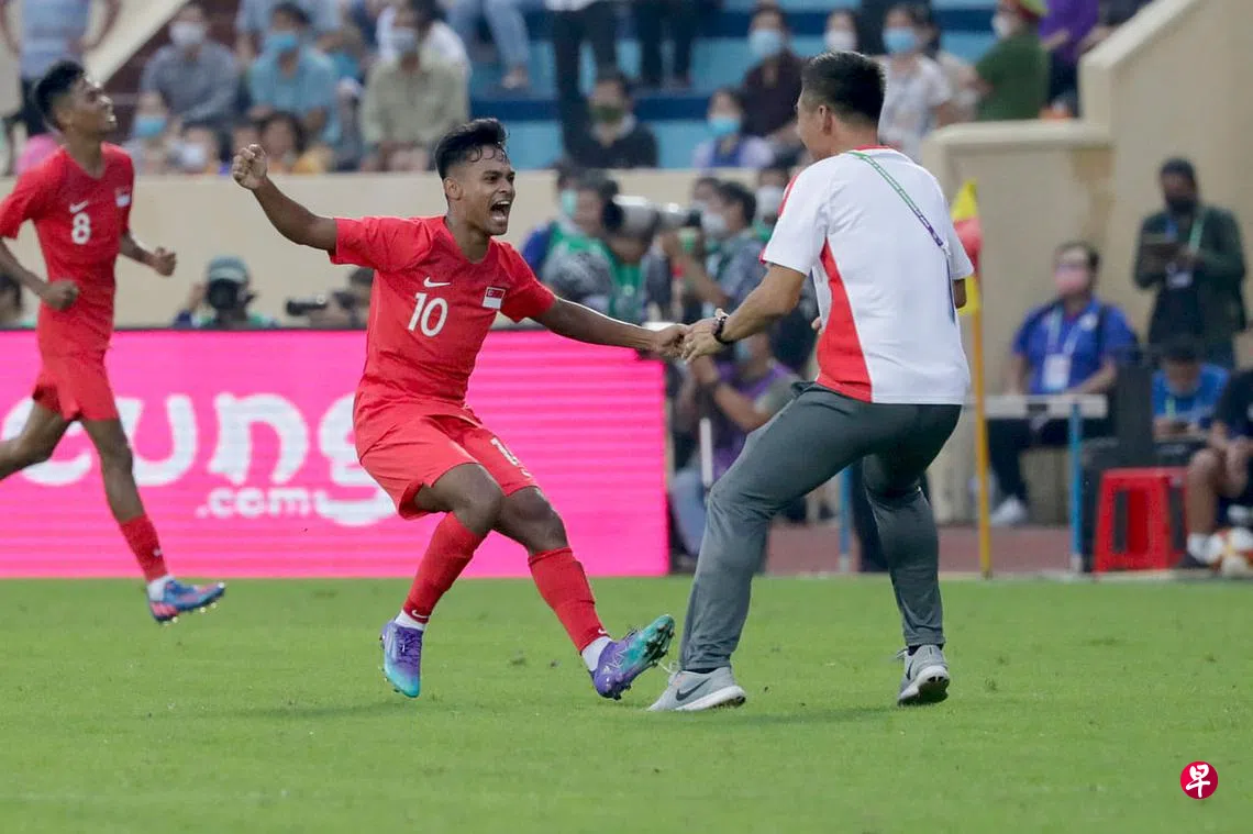 (早报讯)凭借阿克巴的一记头顶进球,新加坡幼狮在河内东运会足球小组赛中1比0小胜柬埔寨,取得本届赛会首场胜利。