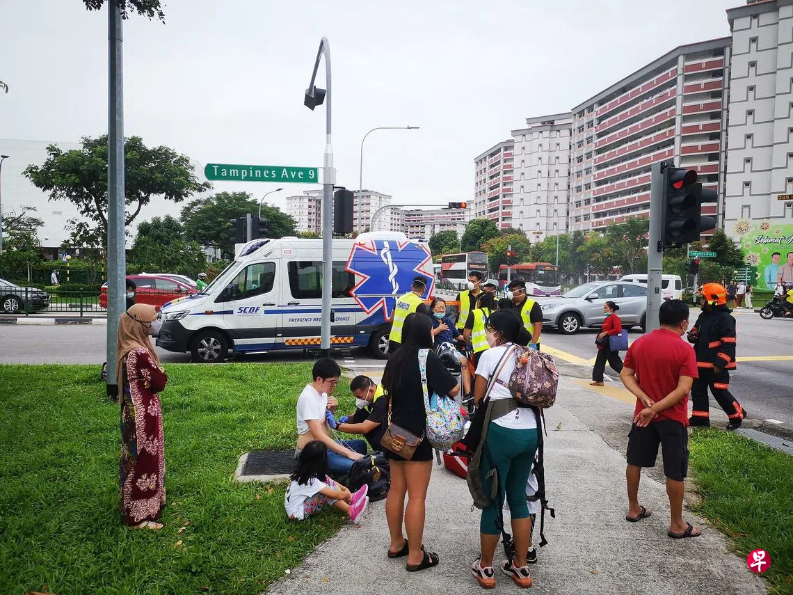 根据居民拍下的视频和照片显示,有一名白衣妇女坐在涉事德士外的地上,怀中还抱着并不停地安抚一名男童。到场的医护人员也为一名坐在草地上的男子检查,男子身旁还坐着年约四岁的女童。