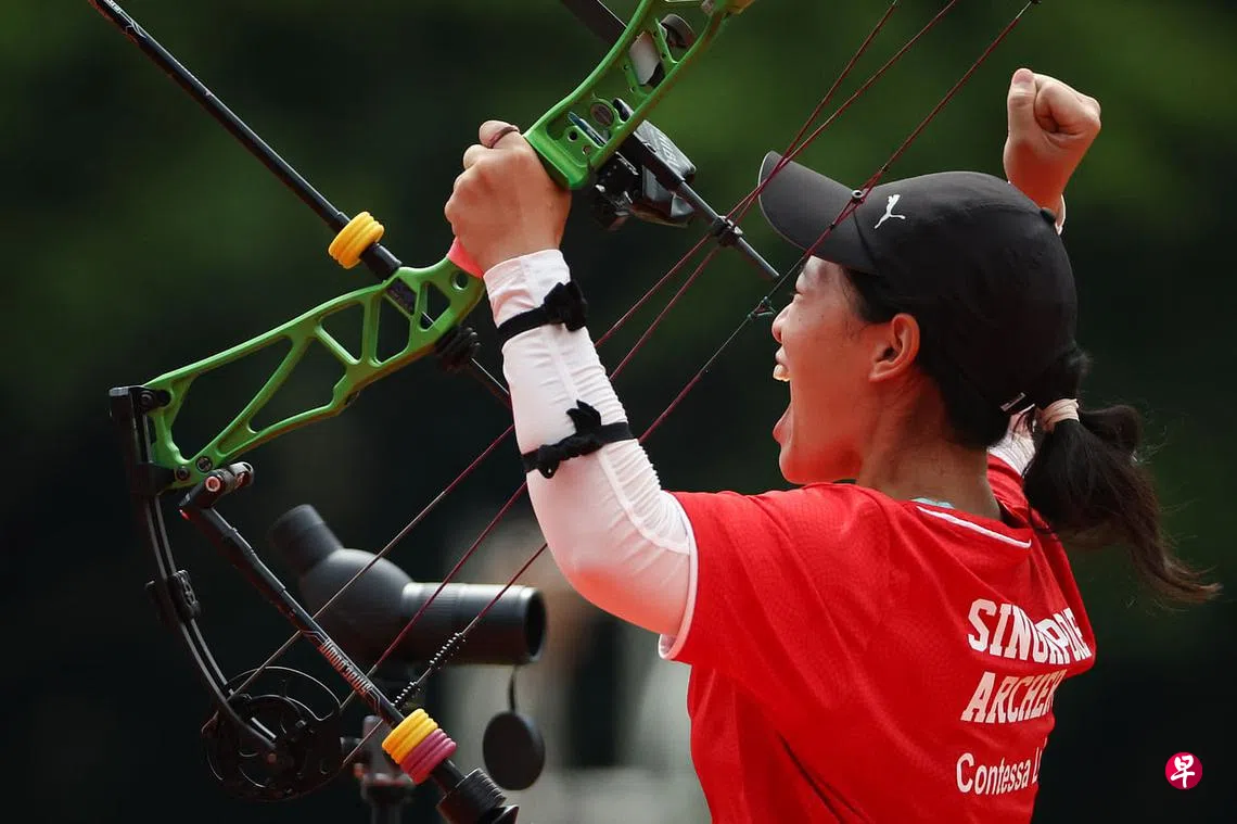 (早报讯)我国女射手罗梓嘉(27岁)在今天(5月19日)的河内东运会女子复合弓个人赛金牌战中,以144比140环分力挫东道主选手邵乐芳,为新加坡夺得自2013年以来的首枚射箭金牌,同时也是2017年以来的首枚奖牌。