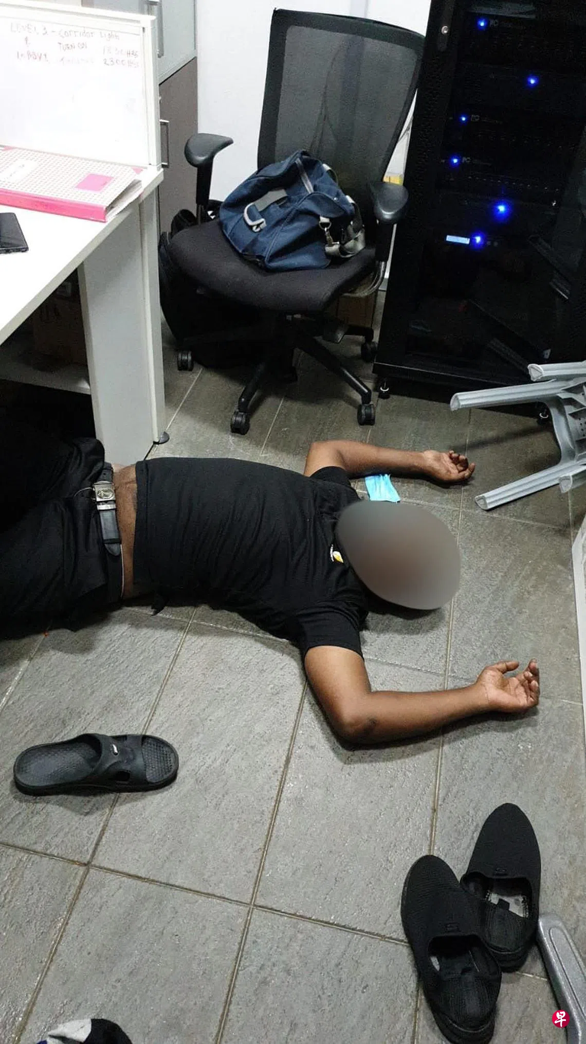 保安公司说明,在网上疯传照片中的保安人员当天值日班,因吃了药感到困倦而睡着了。同事在接班时发现他躺在地板上,于是试图叫醒他,但一直叫不醒便向他人求助。照片中的保安人员安然无恙。