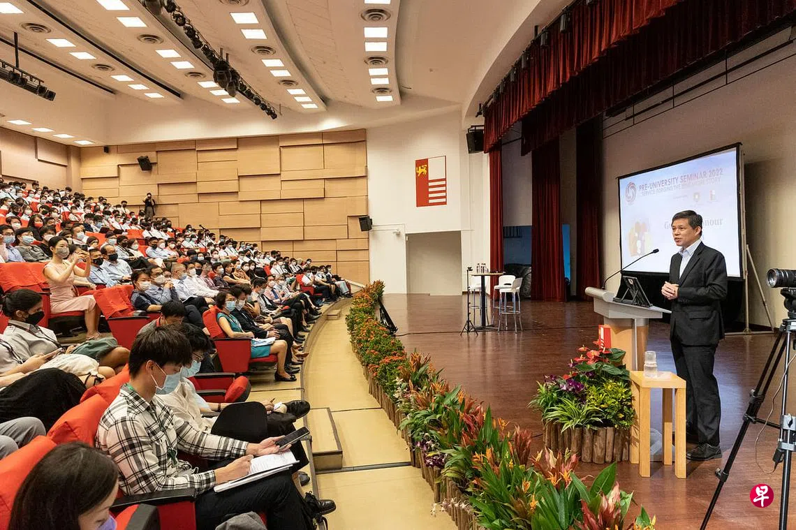 陈振声今天(5月31日)出席在国家初级学院举行的大学先修班研讨会开幕典礼时指出这点。常年的大学先修班研讨会阔别两年后,今年恢复实体活动,主题是“服务:塑造新加坡故事”。来自30所初级学院、理工学院、直通车学校等的550名学生参加为期四天的研讨会。